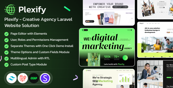 Plexify is a premium Creative & Multipurpose Theme designed exclusively for the W3CMS Laravel CMS. It provides a modern, professional, high-quality frontend experience suitable for:- Digital Agencies