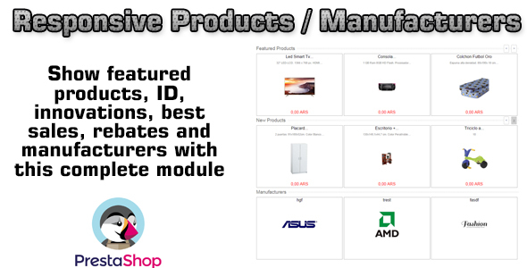 PrestaShop Responsive Products / Manufacturers is a versatile frontend module that allows you to display products or manufacturers (brands) in a fully responsive layout such as sliders, carousels, or grid blocks. It helps improve product visibility, brand promotion, and user engagement across all devices.