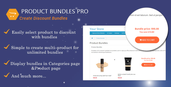ProductBundles for OpenCart is one of MUST-HAVE for ower of any ecomerce site. It boosts sales volume by attracting customers’ shopping behavior, and they are in trending buy combo to save money if the bundle available. For example, now you go to buy a dress and you end up with 2 dress and a pair of shoes. The module will allow you to select products and pack them with a bundle. The bundles display once you one open a product page. Customers are able to instantly see the bundle and the savings that the special price will bring them. Fastest way to making more sales. Product Bundles in Listing Page Display Product Bundles on Product Page Detail Detail Page of Bundles – To Show Description of Bundles Popup to show option bundles for clients Main Features- Compatible with OpenCart 4.x, 3.x and 2.x