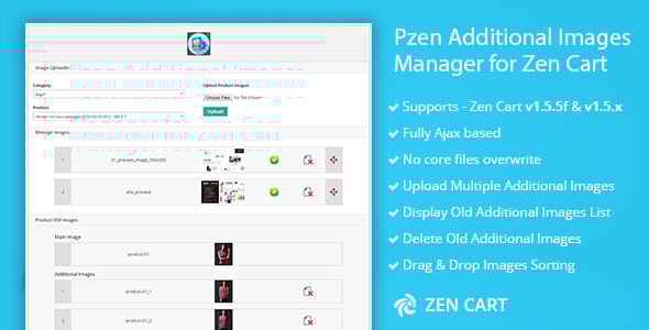 Pzen – Additional Product Images Manager is a powerful extension for Zen Cart that allows store owners to easily manage, display, and organize multiple product images with full control. It enhances the default Zen Cart image system by adding advanced gallery features, better product visualization, and an improved shopping experience.