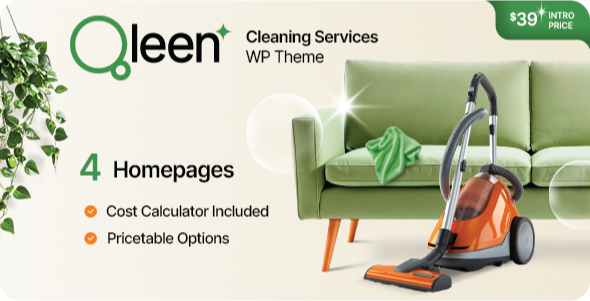 Qleen is a modern, lively, and well-structured WordPress theme created for cleaning service companies, housekeepers, maid agencies, janitorial services, and facility maintenance providers. Its playful yet professional design, fresh color palettes, and carefully designed layouts help you stand out while building trust with potential clients. This theme is a perfect fit not only for home and office cleaning services, but also for window cleaning, carpet cleaning, pool cleaning, laundry and dry-cleaning services, car and vehicle detailing, sanitation services, pest control, and other specialized maintenance businesses. Showcase Services & Pricing with Style Qleen WordPress Theme for cleaning services includes unique service presentation elements and interactive pricing tables that allow you to highlight your offers in a clear and engaging way. Customers can easily explore your service packages, compare options, and book services easily. Flexible & Easy to Customize Powered by the intuitive drag-and-drop Bold Builder, Qleen WP Theme gives you complete creative freedom without requiring coding skills. With one-click demo import and a library of ready-made pages for services, pricing, about, contact, and more, you can launch a fully functional website quickly. Why Choose Qleen?- Modern & playful design with eye-catching color schemes tailored for cleaning and service-based businesses.