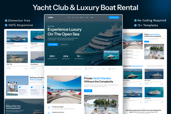 Relsea is a Yacht Club & Luxury Boat Rental Elementor Template Kit designed for yacht clubs, private yacht charter companies, boat rental services, marina businesses, and luxury marine tourism brands. Built with Elementor Free, this template kit allows you to create a premium, fully responsive website without writing any code. The template kit is ideal for showcasing yacht fleets, charter services, booking experiences, and luxury amenities—helping businesses present their offerings clearly while encouraging inquiries and reservations. Design Approach: The design follows a modern, elegant, and conversion-focused layout inspired by high-end yacht and marine service websites. Page sections are structured to guide visitors through featured yachts, service highlights, trust indicators, and clear calls to action for bookings and inquiries. Typography, spacing, and visual hierarchy are carefully optimized for readability, smooth navigation, and SEO best practices. All layouts are fully responsive, ensuring a consistent and polished experience across desktop, tablet, and mobile devices. Features:- Built with Elementor Free (No Pro required)