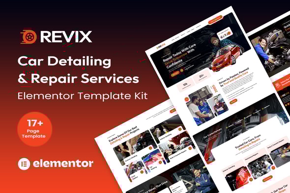 Revix – Car Detailing Services & Car Repair is an Elementor Template Kit designed specifically for Car Detailing Service & Car Repair websites. Revix have complete template package to launch your Kindergarten & Child Care website. Revix has a clean and professional design with a 100% responsive layout, retina-ready, and very easy to customize because using Elementor so you don’t need a single line of coding! This Template Kit contains page content for creating Elementor pages. This kit has been optimized for use with the free “Hello Elementor” theme. Layout Features :- Modern and Professional design