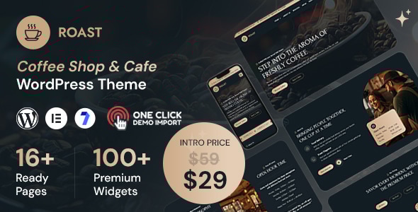 A Modern and Fully Responsive WordPress Theme for coffee shop Step into a cozy Cafe where the rich aroma of freshly brewed coffee fills the air, soft jazz melodies set the mood, and every corner invites you to relax and savor the moment. Now, imagine bringing that same warmth and charm to your website. Roast is a beautifully crafted Coffee Shop & Cafe WordPress theme for Elementor, designed to create an inviting digital experience for your visitors. Powered by Elementor’s drag-and-drop builder, Roast offers seamless customization, allowing you to showcase your menu, highlight special offers, and accept reservations effortlessly. Built with clean code, fast-loading performance, and SEO-friendly optimization, this theme ensures your coffee shop, bakery, or specialty beverage business stands out online. Elevate your brand and captivate coffee lovers with a website that’s as rich and delightful as your brews! Why Choose Roast?- Interactive Drag & Drop Editor: Say goodbye to coding complexities! Design and adjust your website’s layout effortlessly in real time.