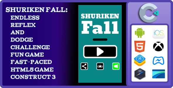 Shuriken Fall: Endless Reflex And Dodge Challenge Fun Game – Fast-Paced Html5 Game | Construct 3