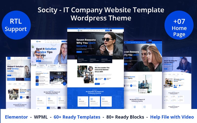 Socity - IT Company Website Template for your Company because We are Included Lot Of Function And we will Include More Features. Using Most Popular Elementor page Builder and Full RTL Supported Include Woocommerce Function. Why You Use Socity Theme? Because the most popular page builder at the present time is made with Elementor. I have added many custom addons. Socity is fully user friendly, responsive and uses the latest version of Bootstrap। This IT Company Website Search engine friendly What is it? Search engine ready is a WordPress template that helps to easily index the website. Why SEO Good With Socity Theme? Because Socity IT Company Website Totally Search engine Friendly. This IT WP template is WPML ready Of Course why not? Socity IT Company's website Totally Supports WPML Multilanguage and RTL Ready What is our TOP Featured? We have added many features to this Socity IT Company Website theme. you are our Top 10 Featured. Elementor page builder: We are Using the Most popular Drag & Drop Elementor Page Builder plugin – an awesome visual page builder for WordPress that lets you effortlessly set up and organize your page layout and content. Super Easy Installation & Setup: Quickly install the theme via WordPress upload or FTP, then use our awesome 1 Click Demo Importer to set up demo pages, posts, sliders, widgets, theme options, etc. Easy 2-minute setup! Contact Form 7: We use the contact form 7 plugin for contact forms. We already set up for you, contact form 7 is nice and easy! Also, you can create your own form. One-Click Demo Importer: A very handy feature that is added to the Theme, you can import a live preview with only one click. You enjoy adding your content and playing with design, rather than creating everything from scratch. Responsive Layout: Socity - IT Company Website WordPress Theme has a responsive layout that will respond to your screen width and make content appearance be perfect on all devices, from large desktop screens to mobile phones and tablets. Powerful Theme Options: Socity - IT Company Website WordPress Theme is a perfect example of flexible Theme options, that can easily adjust and adapt to diverse web design & development needs. RTL Support: Socity - IT Company Website WordPress Theme Right-to-Left Language Support. WPML: Socity - IT Company Website included WPML The WordPress Multilanguage Plugin Function. so you can add unlimited Language. WooCommerce Support: WooCommerce Integrated Online store is a very important part of the modern web. We include WooCommerce Function Child theme compatible: Socity enables you to easily override default template files using a child theme. It also enables you to update your theme in a safe way!Socity - IT Company Website Theme Featured