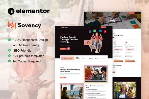 Sovency – Social Media Marketing Agency Elementor Pro Template Kit