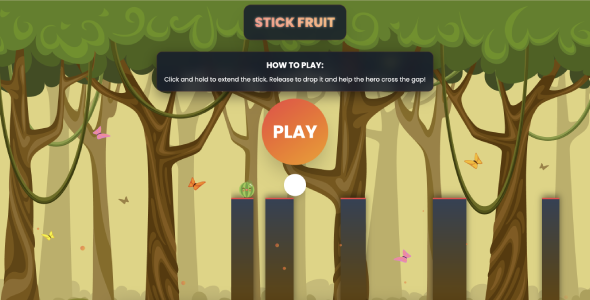 Stick Fruit is an addictive HTML5 arcade game where players help their fruit hero cross platforms by extending a stick bridge. Simple yet challenging, this game offers endless fun with randomized platforms, score tracking, restart options, and fruit character selection. Built using pure HTML5, CSS3, and JavaScript, the game runs smoothly across tablet, and desktop devices. The code is clean, lightweight, and easy to customize—making it perfect for developers, publishers, and website owners who want to add engaging gameplay to their platform.Stick Fruit is a fast, one-tap HTML5 skill game where players extend a stick to bridge between floating pillars and collect fruits mid-air. Time the stick length perfectly: too short and you fall, too long and you overshoot. Grab fruits on the way for bonus points, streak multipliers, and unlockable skins. Built with lightweight HTML5 Canvas + JavaScript, it runs smoothly on mobile and desktop, ready for portals or packaging to Android/iOS.