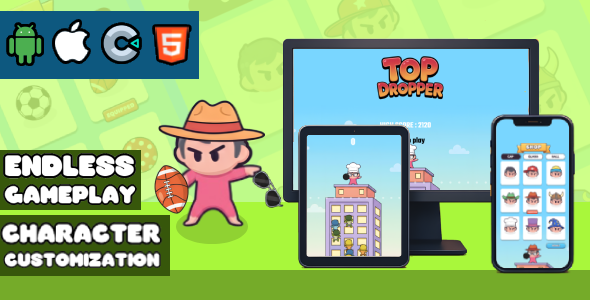 Top Dropper is a fast-paced and addictive HTML5 casual game where you play as a cool agent standing on top of a tall building, defending yourself against climbing zombies! Use smooth drag controls to drop balls and knock the zombies down before they reach you. With full character customization — change your cap, glasses, and ball style — the fun starts right away. All items are unlocked from the start for instant action! Features 100% HTML5 – Works perfectly on all modern browsers. Responsive Design – Fully optimized for desktop, mobile, and tablet. Simple Drag Controls – Just drag to aim and drop the ball with precision. Character Customization – Change your hat, glasses, and ball design. Three Shops – Hat Shop, Glass Shop, and Ball Shop included. All Items Unlocked – Every cosmetic available from the start! Zombie Enemies – Stop the climbing zombies before they reach the top. Colorful Graphics – Fun, bright, and cartoon-styled visuals. Addictive Gameplay – Easy to play, hard to stop! Fully Customizable Source Code – Modify visuals, items, or difficulty easily. Multi-Platform Ready – Compatible with HTML5, Android, iOS, and PC. How to Play Mobile: Drag your finger to aim and release to drop the ball. Desktop: Click and drag the mouse to control the throw direction. Objective: Stop the zombies from climbing to the top. Drop balls to knock them down before they reach you. Customize your character with hats, glasses, and ball skins. Score high and defend your rooftop as long as you can! Top Dropper delivers quick, fun, and zombie-smashing gameplay with full customization and smooth controls. Perfect for mobile, desktop, and tablet — play anytime, anywhere!(Only For Premium Category Products !)