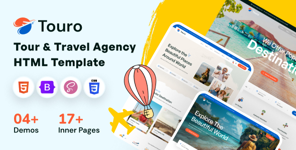 Touro is a sleek, modern, and fully responsive HTML template designed exclusively for travel agencies, tour operators, booking platforms, and adventure tourism websites. Crafted with precision and powered by Bootstrap 5, Touro brings your travel business to life with visually stunning layouts, seamless responsiveness, and a host of interactive features. Touro is a modern and feature-rich HTML template built specifically for travel agencies, tour operators, booking platforms, and adventure websites. Designed with flexibility in mind, Touro is perfect for showcasing tours, destinations, and travel packages with style and functionality. Packed with beautifully designed homepages and essential inner pages, this template is built on the latest Bootstrap framework for full responsiveness and mobile compatibility. Whether your visitors use smartphones, tablets, or desktops, Touro ensures a smooth and engaging experience on every device. Touro is suitable for travel agencies, tours, travel websites, tour operators, tourism, booking trips , or an adventure website.Homes Pages and great features to help your shop stand out from the crowd. It’s fully Responsive and packed with many powerful HTML plugins such as Slick jQuery Slider, Isotope, and so on. Go and check out Touro now! Touro on a robust framework that ensures its seamless operation. They chose to use the Underscores framework, so this HTML is fully Responsive and mobile-friendly. It is also fully compatible with the latest Bootstrap Latest version. Therefore, your users can use whichever devices they want. Perfect for travel websites, booking platforms, adventure tours, agencies, and destination showcases. Touro is a Travel & Tour Booking Agency HTML Template. Touro is suitable for tours, travel agencies, travel websites, tour operators, tourism, trips, destinations, trip booking, adventure, and all other travel & tourism websites and businesses. The design of the HTML Template is a way for you can easily promote your restaurant and highlight what you are offering. It provides a helping hand to you with highlighting and communicating critical information accurately. Touro is a fully Responsive and trendy designed HTML Template.- Bootstrap 5.x Framework