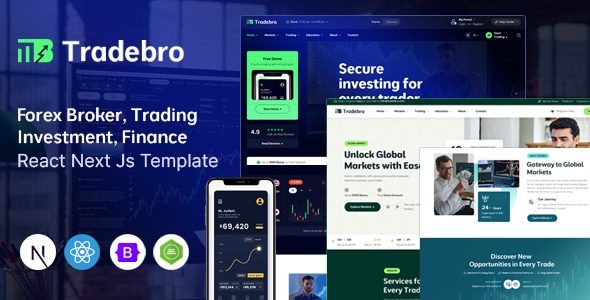 TradeBro is the new outstanding, extremely modern Next Js Template designed for for Forex brokers, crypto traders, stock market analysts, commodity platforms, and financial service providers. Whether you’re running a brokerage firm, investment company, trading academy, fintech startup, or offering personal finance consulting — TradeBro has everything you need. The template comes with a creative 04 homepage design layouts, responsive and 34+ valid Next Js files. The design is very elegant and modern, and also very easy to customise with 1170px grid. We hope so you will feel happy with them. Features Overview- Responsive Layout Design: What ever you are using the device your site will run as it should be. The TradeBro is fully responsive layout for all type of devices.