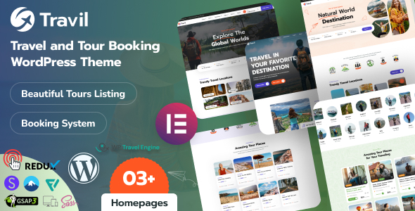 Travil is a premium, feature-rich WordPress theme meticulously designed for travel agencies, tour operators, booking platforms, and adventure companies that aim to deliver unforgettable travel experiences online. Whether you’re launching a full-scale tour booking website or offering curated travel packages, Travil is the perfect theme to showcase your services and convert visitors into customers. It is also responsive and mobile-friendly, ensuring the website looks excellent on all devices, from desktop computers to tablets and smartphones. Given that many potential clients browse websites on mobile devices, this responsiveness is critical for capturing and retaining visitor attention. Travil WordPress Theme Features:- 3 Stunning Demo Layouts: It comes with 3 professionally designed demo layouts, each tailored to different travel business needs. The demos are built with Elementor, making it easy to customize every section without any coding knowledge.