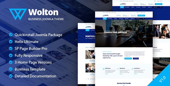 Wolton Is build on Helix Ultimate 2, so is Bootstrap 5 ready, fast, secure. Wolton is highly suitable for any consulting agency, finance, consultant, advisor, business and all other consultancy agency and businesses. You can change colors in entire website in few seconds. In Template Options you need to change our colors to your colors and hit button save, Done! RTL Support Aali is complete RTL (Right to Left Language) supported Joomla Template, no configuration needed, just install your language and all Done!. Boxed & Full-Width Layout Modes Now you can choose your Layout either Boxed or Full Width with just a click of the Button from template’s options, changing the complete look of your website within few seconds. Layout can be changed from Boxed to Full Width without affecting the design quality. Quickstart installation included We included quickinstall zip for you to have our demo in seconds. Quickinstall is joomla installed + templates, extensions, plugins, configured and ready to use in your websites. You need to upload on your server, to create new database, user, add user to database and hit install button. Bundled Plugin Power Not only will you save heaps but you also get to extend the functionality with Joomla! with some of the heaviest hitting plugins, but they are all included in the one off purchase price of Wolton SP Page Builder Pro SP Page Builder version Trusted by over 400,000 people across the world, with SP Page Builder you’ll be creating killer pages with the ease of drag & drop. With a completely visual way of building pages, SP Page Builder is fast, easy to use and best of all happens in true time so you can be sure of your changes before committing them to the live site. Template Features:- - 3 Home Page Versions
