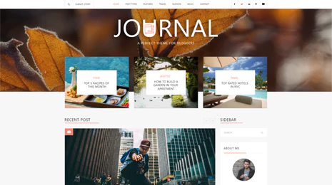 - The Journal theme features a minimalist design that emphasizes readability and content presentation. The clean and organized layout is ideal for displaying articles, blog posts, and multimedia content in an aesthetically pleasing manner.