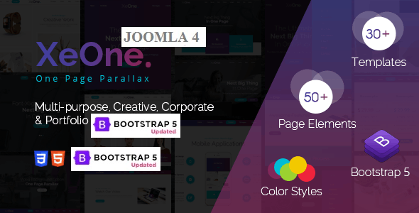 XeOne – One Page Parallax Joomla Responsive Template suitable for any creative or business startups. Multiple navigation styles are included in this template with lots of CSS and JQuery animations, a perfect template for business startups, web studio and creative agencies. The standard information sections will help anyone to customize according to their company info. This template is very well commented and also have proper help documentation too.XeOne is a powerful and elegant One Page Joomla 4 Template built with a modern parallax scrolling design. It is ideal for creative agencies, startups, portfolios, freelancers, and businesses who want to showcase their services in a sleek, single-page format. With smooth animations, responsive layouts, and flexible customization options, XeOne ensures a professional online presence.